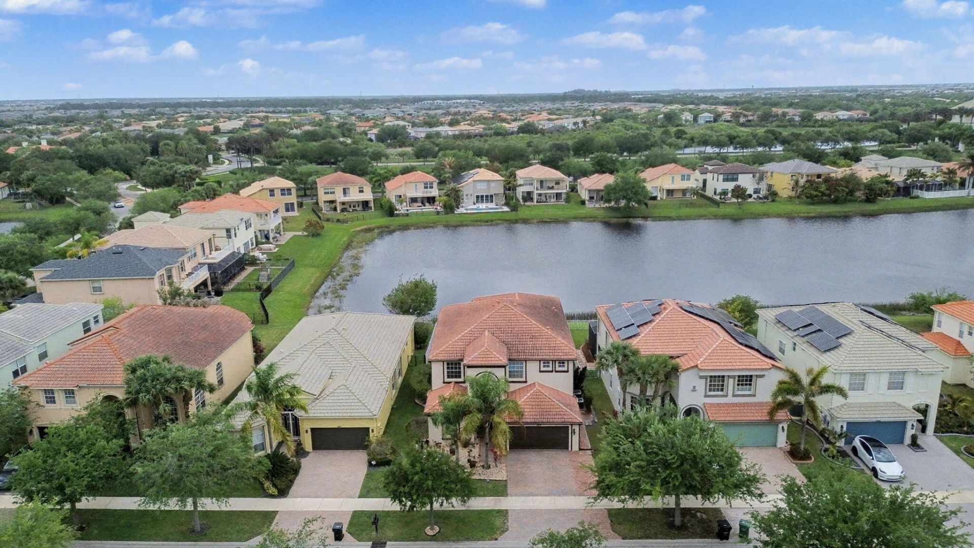 Beautifully maintained 5-bedroom, 3.5-bath, 2-car garage lakefront home in the highly sought-after TownPark community of Tradition. This popular Coventry model is loaded with upgrades, including fully upgraded kitchen and bathroom countertops, redesigned kitchen island cabinetry with widened countertops, double oven, electric induction cooktop, stainless steel appliances, and a whole-house water filtration system. Additional improvements include a microwave vented to the exterior, new water heat...Beautifully maintained 5-bedroom, 3.5-bath, 2-car garage lakefront home in the highly sought-after TownPark community of Tradition. This popular Coventry model is loaded with upgrades, including fully upgraded kitchen and bathroom countertops, redesigned kitchen island cabinetry with widened countertops, double oven, electric induction cooktop, stainless steel appliances, and a whole-house water filtration system. Additional improvements include a microwave vented to the exterior, new water heater (2025), bamboo flooring throughout the upstairs and staircase, custom closets in the primary and two additional bedrooms, and a marble ledger panel accent wall in the family room. The primary and loft bathrooms have been tastefully renovated with frameless glass shower doors, tiled walls, and a jet shower system. A versatile added bedroom and closet upstairs off the primary bedroom provide additional flexibility. Air handlers were replaced in 2015, and the home also includes a brand new washer and dryer. Exterior enhancements include a widened driveway that accommodates up to three cars side-by-side, a French drain system for improved drainage, bordered flower beds, and tranquil lakefront views, creating a peaceful outdoor setting. This home offers a bright, open-concept floor plan that seamlessly connects the main living areas to a covered patio overlooking the lake-perfect for both everyday living and entertaining. The spacious primary suite is a true retreat, complete with a private sitting area, oversized custom walk-in closet, and a covered balcony with stunning water views. Enjoy a short walk to the clubhouse, where residents have access to resort-style amenities including a pool, fitness center, tennis, basketball, and more. HOA fee includes cable, high-speed internet, gated security, recreational facilities, alarm monitoring, and landline phone. Located in the heart of Tradition, this move-in ready home combines luxury upgrades, functional living space, and an unbeatable community lifestyle.