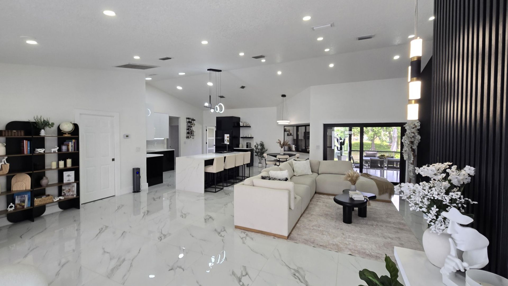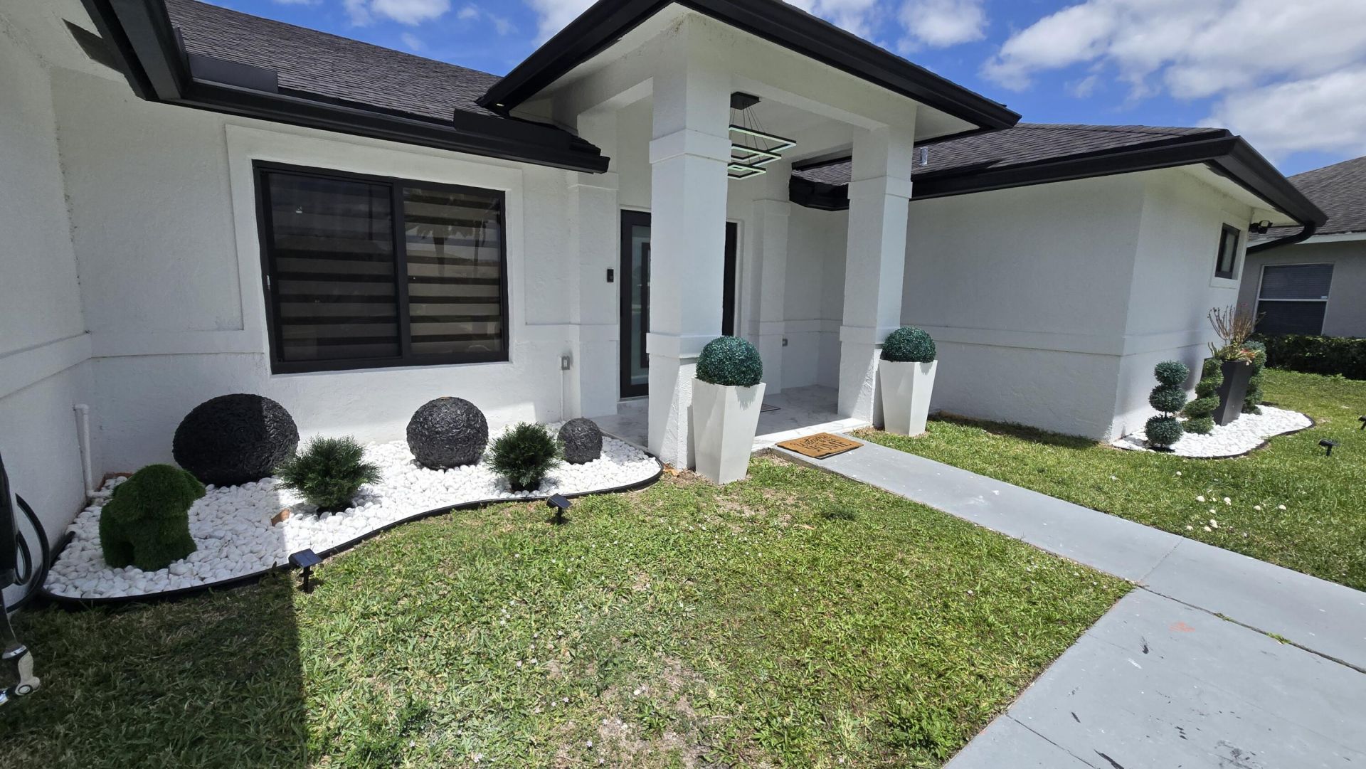 Best location! Beautiful 3-bedroom, 2-bath home with a dedicated office and a double garage in Royal Palm Beach, offering over 2,600 total square feet. This property has been completely remodeled with modern finishes in elegant beige, white, and black tones, creating a sophisticated, luxury feel throughout. Enjoy stunning marble floors, high ceilings, and a roof replaced in 2018-providing peace of mind for insurance. The modern kitchen features a spacious island with bar stool seating, perfect f...Best location! Beautiful 3-bedroom, 2-bath home with a dedicated office and a double garage in Royal Palm Beach, offering over 2,600 total square feet. This property has been completely remodeled with modern finishes in elegant beige, white, and black tones, creating a sophisticated, luxury feel throughout. Enjoy stunning marble floors, high ceilings, and a roof replaced in 2018-providing peace of mind for insurance. The modern kitchen features a spacious island with bar stool seating, perfect for entertaining and everyday living. All doors and windows are impact-resistant, and the home includes a tankless water heater for added efficiency and convenience. Step outside and experience your own private oasis: featuring a cozy fireplace area, and the soothing sound of the relax canal water.